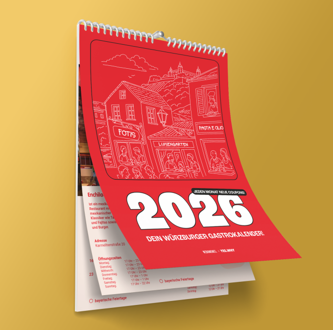 Der Würzburger Gastrokalender 2026 ist Kalender und Gutscheinheft in einem – mit 12 Restaurants, 12 Monaten und 12 exklusiven Coupons.
